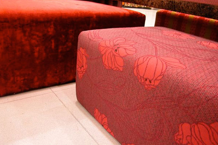 Fabric from Chenille to Velvet and leather as well as the very famous Suede fabric “Tiffany” used for home use as well as for heavy public spaces use such as restaurants night-clubs and theaters.